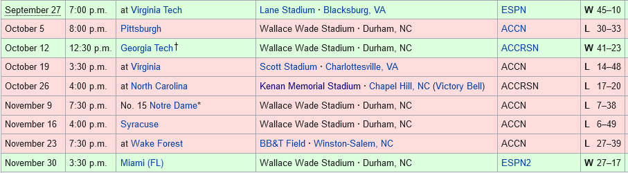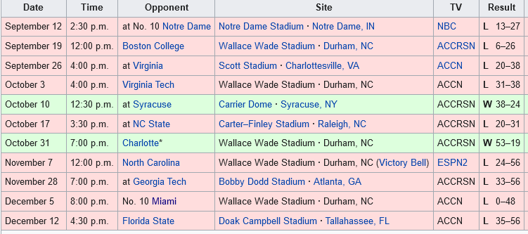 - The Blue Devils’ staff isn’t adapting. Twice this season Duke lost leads in the 4th quarter after retaking a lead. Why? Because the staff continues to employ the same defensive scheme that exposes our corners. Opposing teams figured it out and, just like not finding a way to cover the wheel route, our staff hasn’t. It’s the same with the offense. The predictability problems that started to seep in during the Daniel Jones era continue to haunt the program now. Cut has to go outside of his “people” and get someone with some fresh offensive ideas. Otherwise, we better get used to being at the bottom of the Coastal.